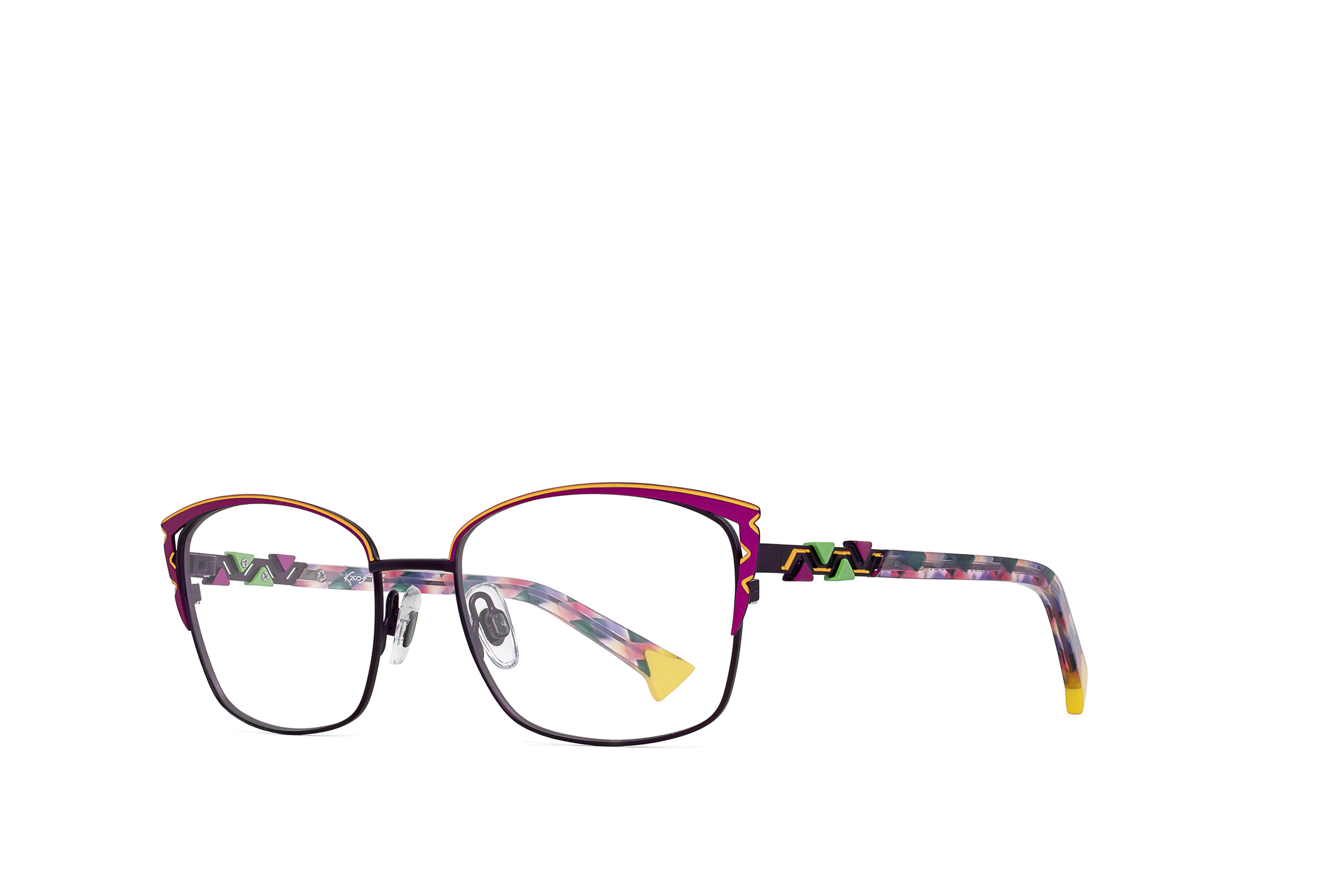 Aparentemente descoordinadas y desordenadas, las gafas de KAOS están diseñadas cuidadosamente hasta el más mínimo detalle, y buscan representar una nueva forma de expresión que permite unir, combinar e interpretar libremente los colores. Estas son las características de las gafas KAOS, donde diferentes texturas y patrones se unen a través de la técnica del collage para destacar y acentuar el dominio del KAOS.