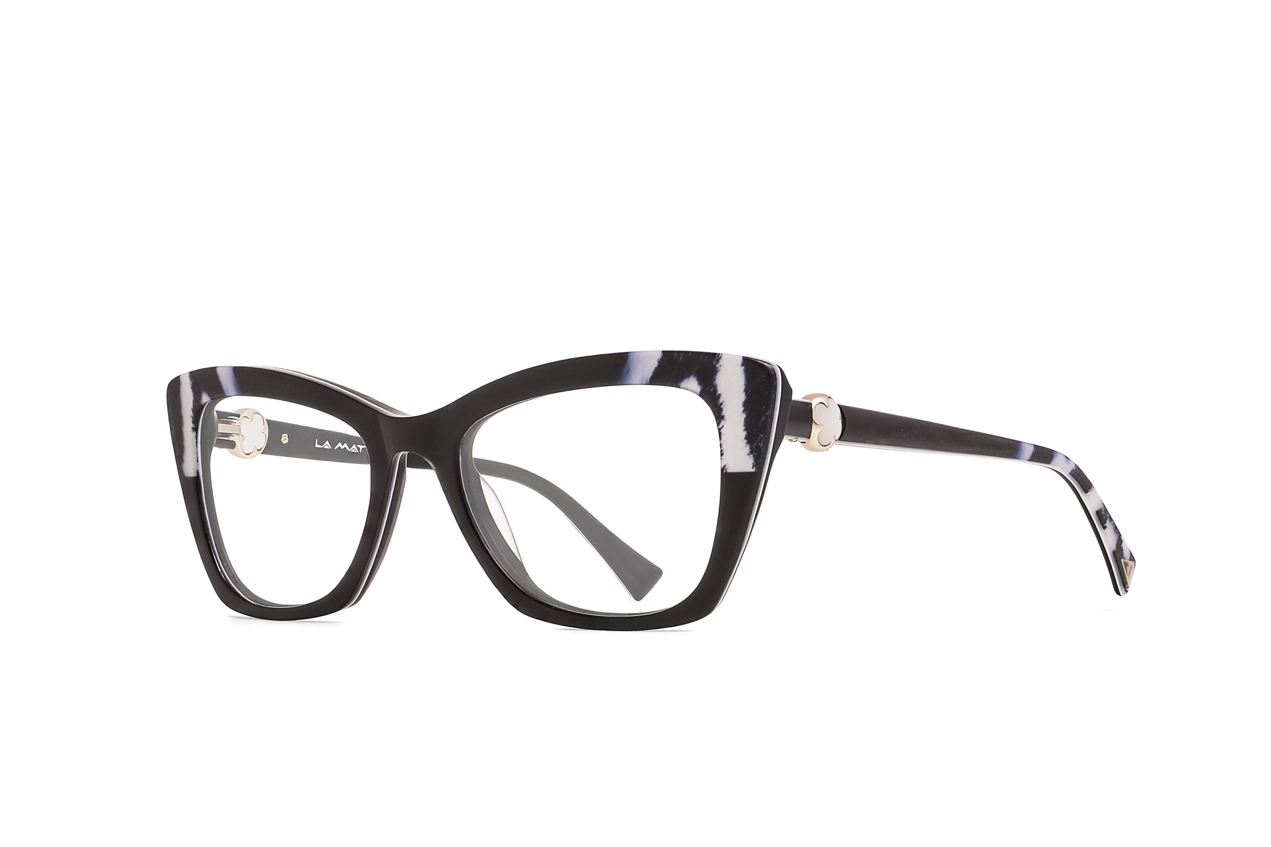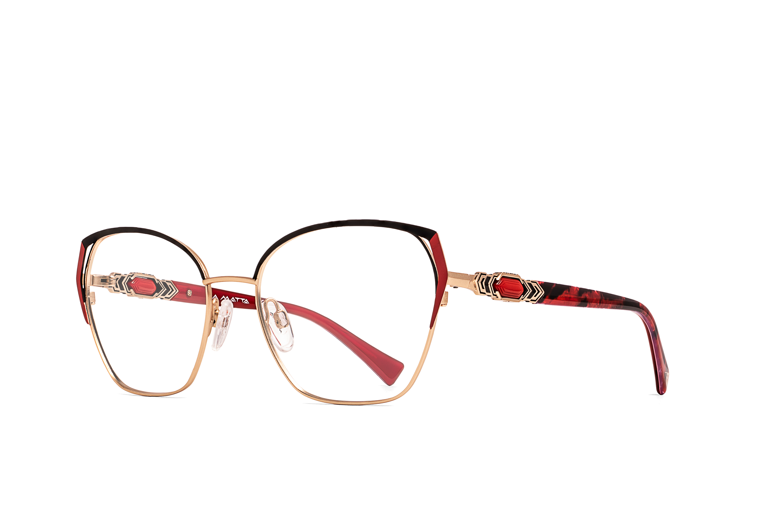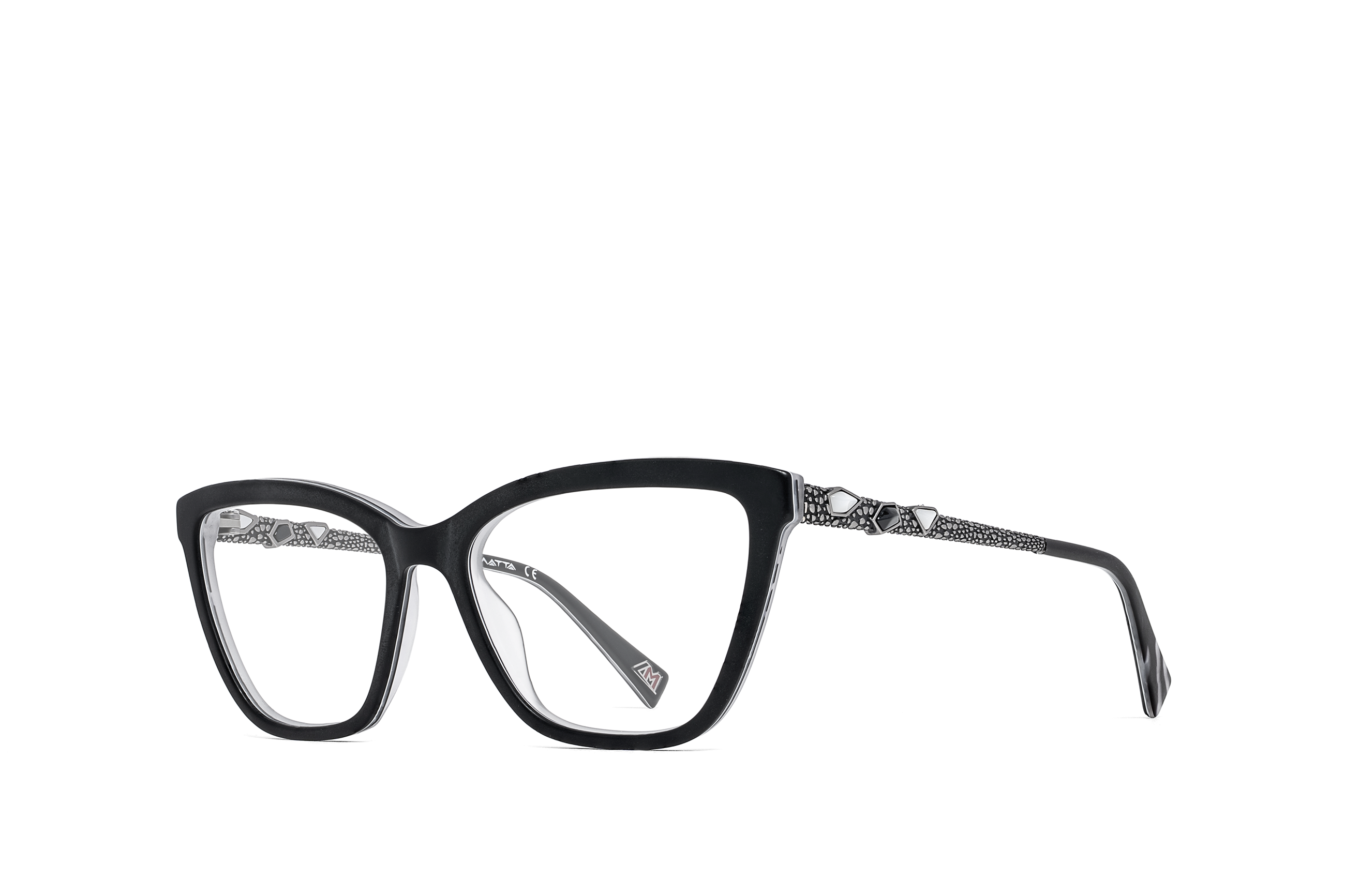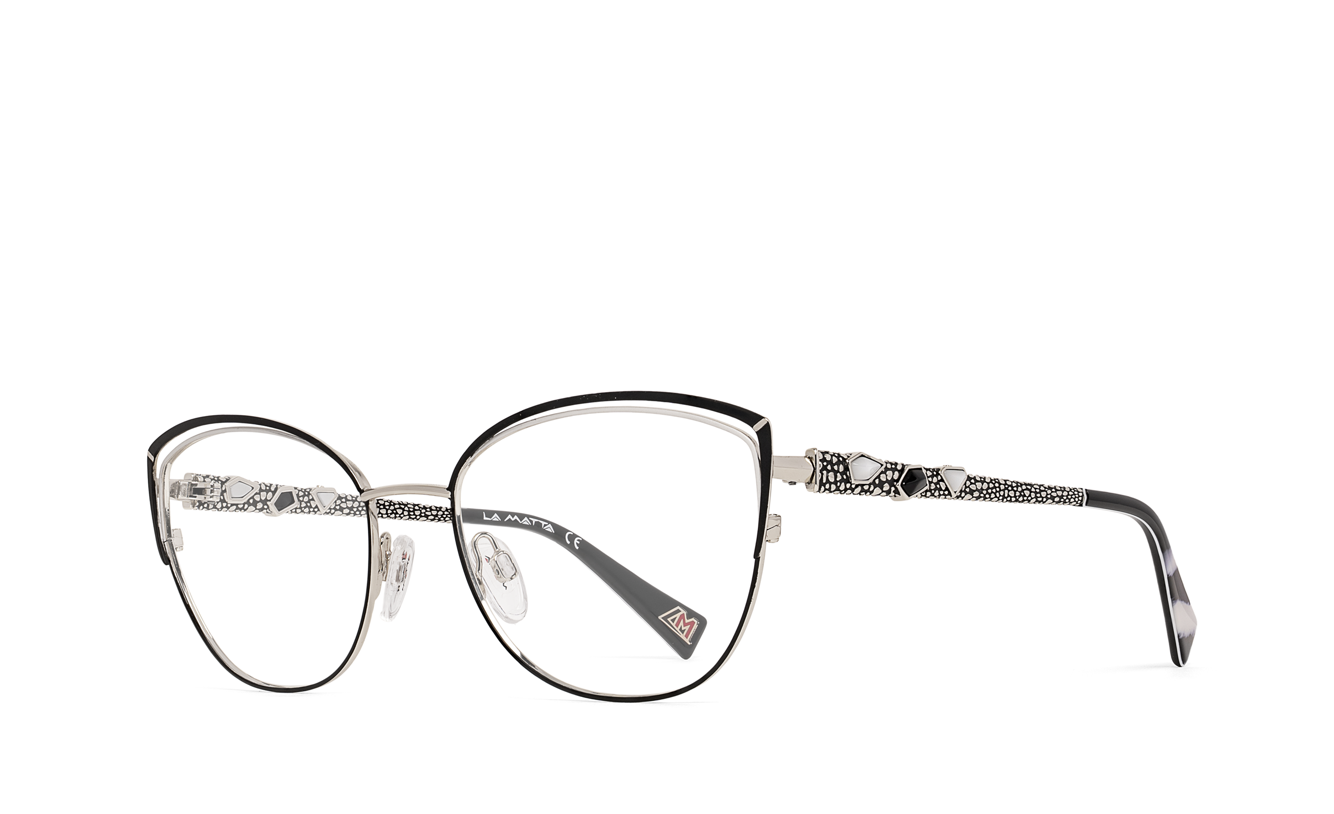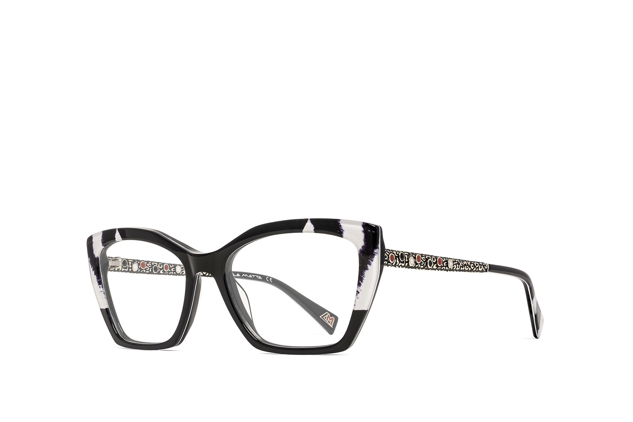 Proprio come gli occhiali LA MATTA, dove elementi decorativi in metallo e pietre creano sulle aste delle montature giochi ammalianti e seducenti, che enfatizzano i lati più nascosti e selvaggi delle donne che li indossano.